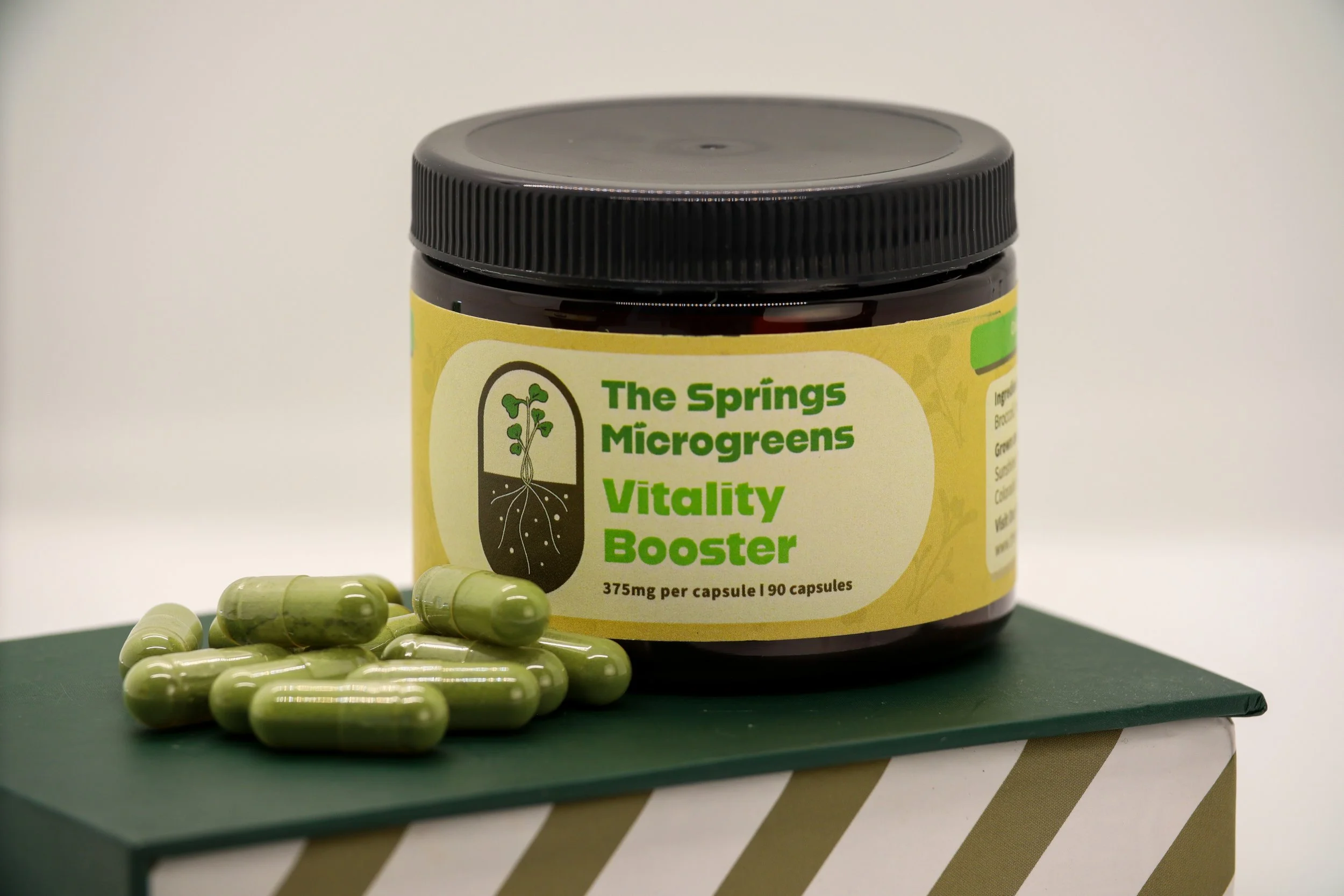 The Vitality Capsule is designed to meet this need, delivering a natural, bioavailable supplement packed with an abundance of micronutrients. This innovative capsule contains a unique blend of four dehydrated microgreens: Pea Tendril, Broccoli, Radish, and Cilantro. Each microgreen is selected for its specific health benefits, contributing to a comprehensive nutritional profile.
