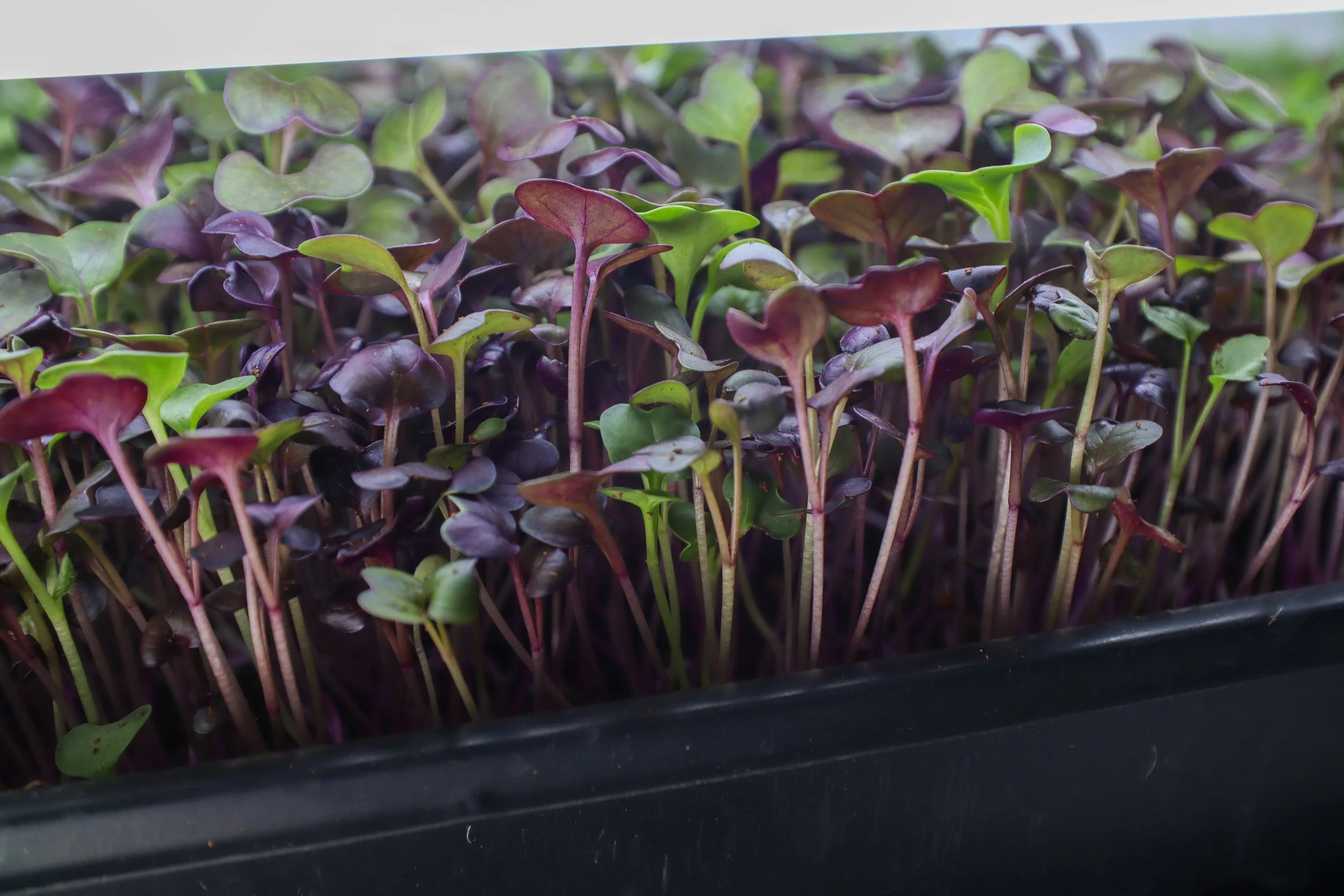 Radish microgreens are a nutrient-dense superfood, offering a concentrated source of vitamins A, B, C, E, and K. They also provide essential minerals such as calcium, iron, magnesium, phosphorus, potassium, and zinc. Rich in antioxidants, including vitamin C, anthocyanins, and carotenoids, radish microgreens help protect cells from damage and support the immune system. Additionally, their anti-inflammatory properties may reduce the risk of chronic diseases, and their high fiber content aids in digestion and supports healthy blood sugar levels.
